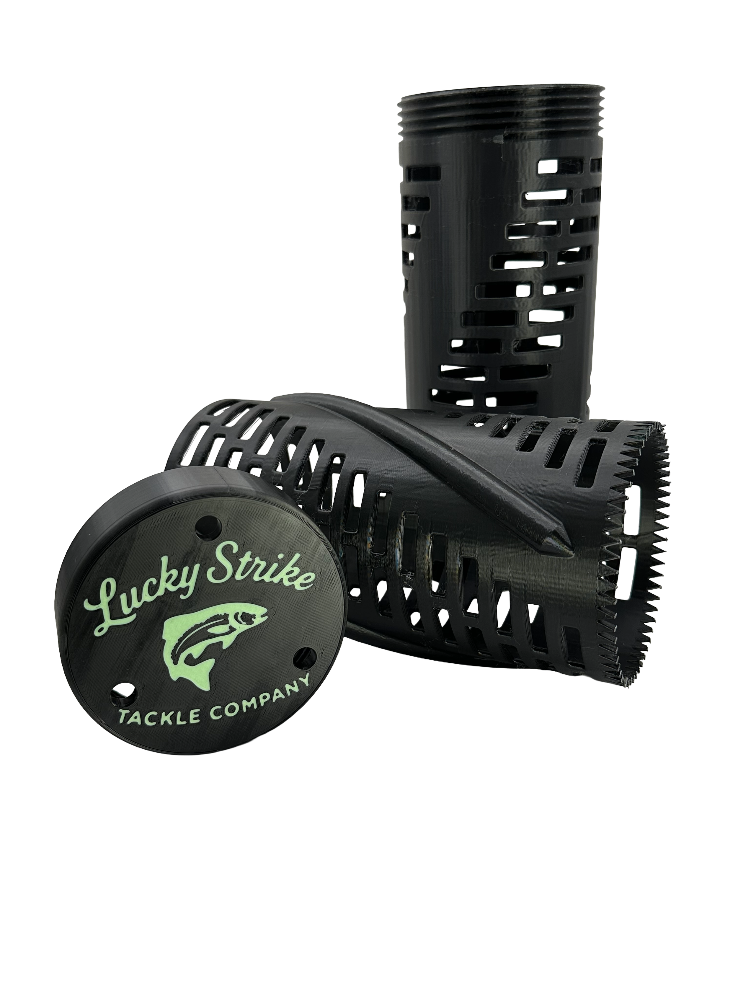 Engineered for shrimp pots, this compact system provides controlled bait dispersion while maintaining durability and visibility in low-light conditions.